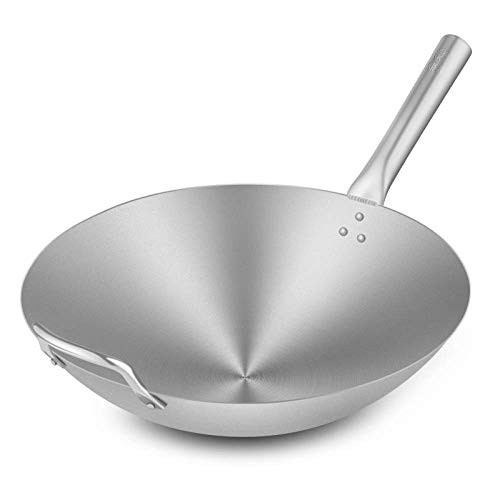 CTCOIJRN Edelstahl-Wok 34, 43 cm, antihaftbeschichtet, geeignet for alle Herdarten, einschließlich Induktion, Griffe, Silber, 43 cm(34cm)