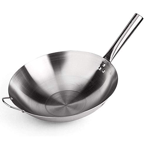 CTCOIJRN Edelstahl-Wok 36, 43 cm, antihaftbeschichtete Pfanne for alle Induktionsherde. Im Lieferumfang enthalten. Halten Sie den Griff 43 cm kühl