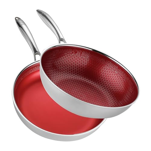 FIXLINE® 2-Set Pfanne & Wok Set 28cm Black Forest Red Design – Natürliche keramische Beschichtung – Alle Herdarten inklusive Induktion – Backofengeeignet