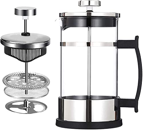 French Press Kaffeemaschine, Edelstahl mit hitzebeständigem Glas Morgenkaffee, Kaffeebrüher mit maximalem Geschmack