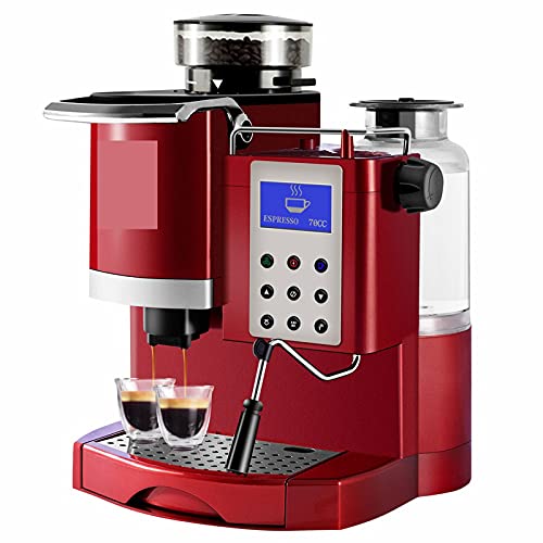 xuejuanshop Kaffee Maschinengrinder Milchwärmer für Machen Espresso Latte Cappuccino Americano (Color : Pearl Red, Plug Type : EU)