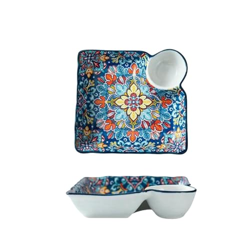 YLCYDLYU Teller Set 2 Stück Segmentierte Frühstücksteller Aus Keramik Für Den Heimgebrauch-Blau-7.09 inches